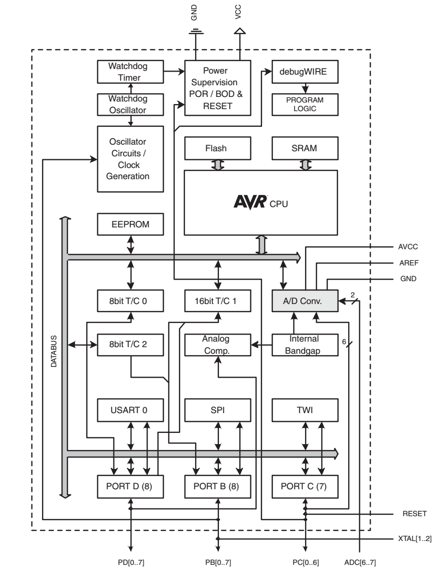 float x = 1.135;x é uma variável que armazena números inteiros, cujo valor é igual a 1.135.float e double são equivalentes.double possui o dobro de bits, e pode ser usado para cálculos de maior precisão.var = 1+1; por var = 3/2;? (Não façam no programa ainda!)float. Caso contrário, o compilador interpretará a equação como sendo no domínio dos inteiros!var = 3./2.;float.float’s são bem mais complicados para o processador do que aqueles envolvendo inteiros. Desta forma, se quisermos cálculos mais rápidos devemos evitar usar float.Arquivo/Exemplos/01. Basics/AnalogReadSerial.A0). Sabendo que a resolução da medida é 10 bits (0-1023), e que o valor máximo corresponde a 5V, convertam sensorValue para tensão.analogWrite implementada no arduino permite modular a potência de um sinal uma resolução de 8 bits (\(2^8=256\) valores de potência).