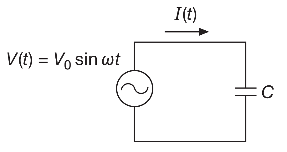 - \(I=C \frac{dv}{dt}\), com \(v=Ae^{j\omega t}\)