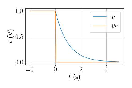 - \(v = a e^{-t/RC} + b\) é tal que \(v(0)=v_S\) e \(v(\infty)=0\)